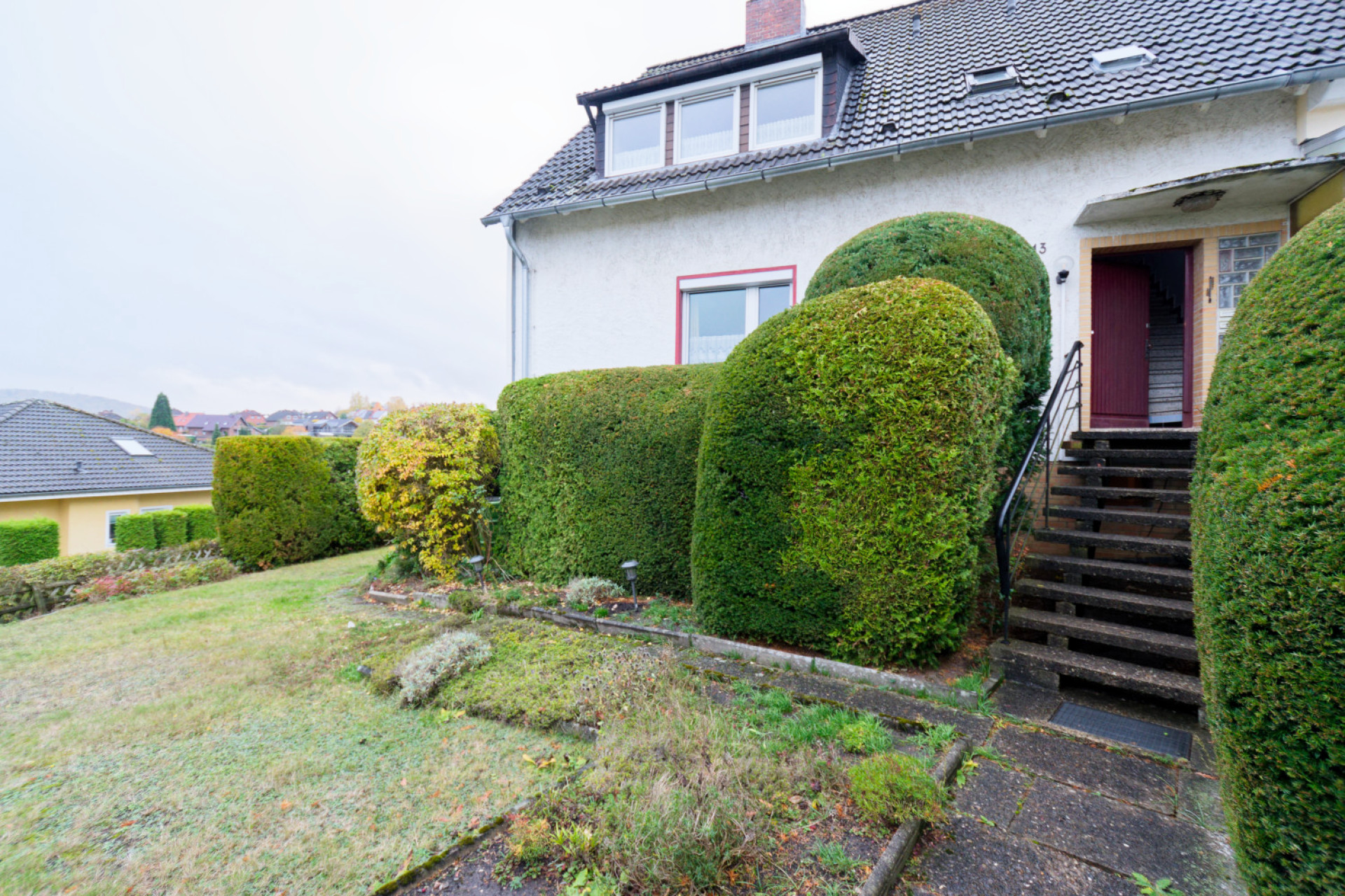 Die gebotene Doppelhaushälfte in ansprechender Hanglage und mit herrlichem Panoramablick wurde als Einfamilienwohnhaus mit Einliegerwohnung konzipiert, rein praktisch aber als 3-Parteienhaus genutzt – mit einer Einheit je Etage: